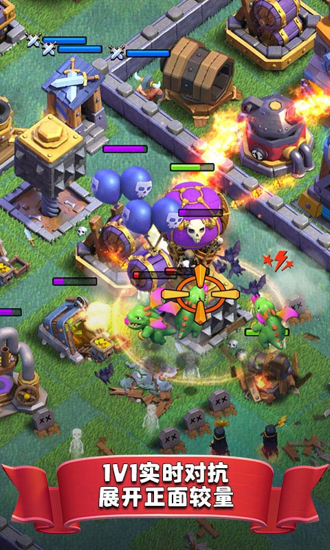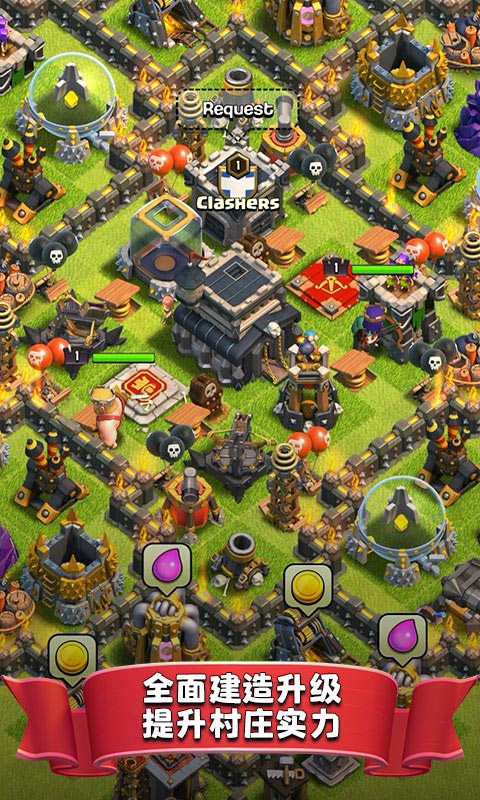 使用加农炮、箭塔、迫击炮、城墙和陷阱等防御设施保卫村庄。